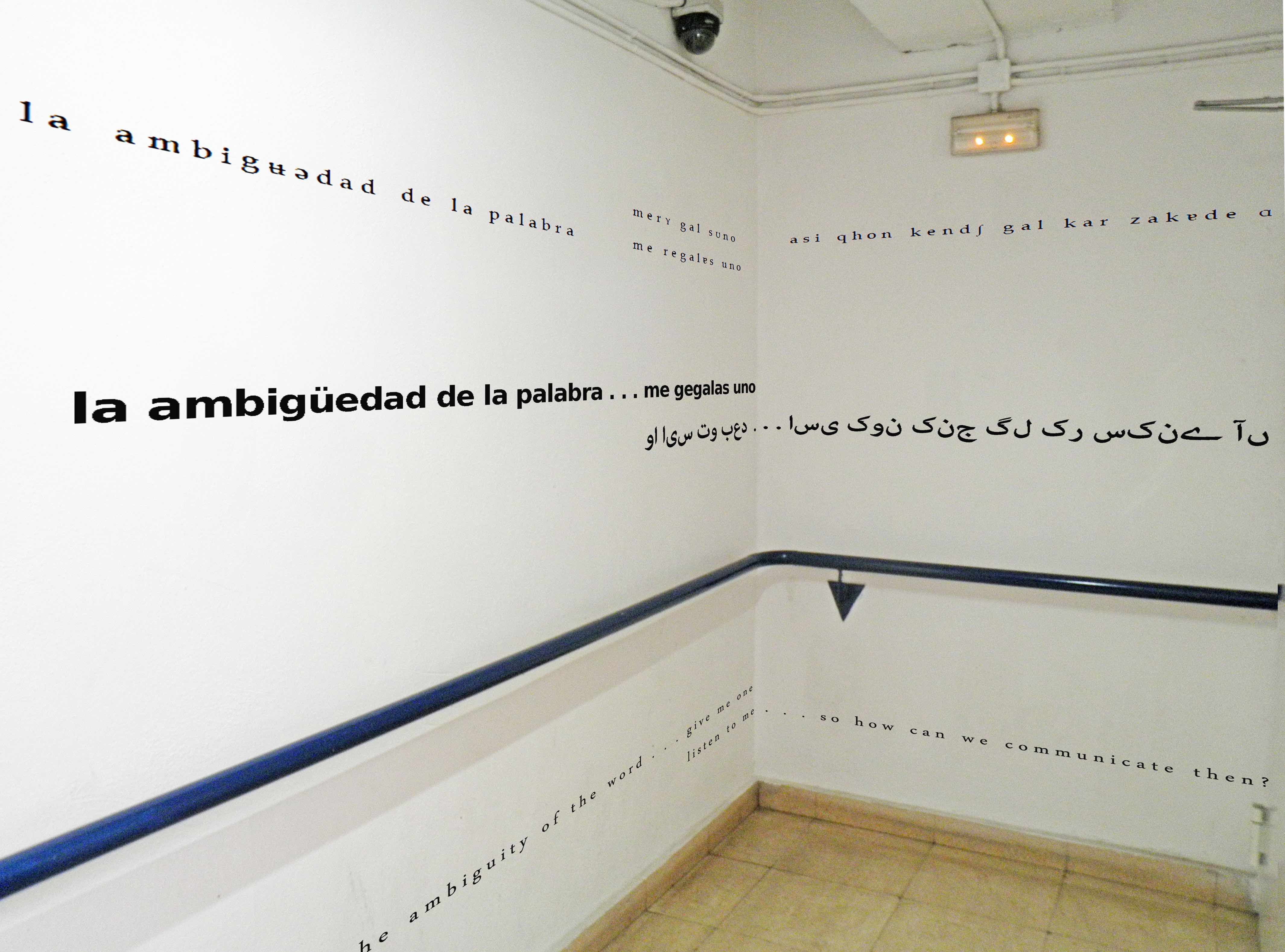 Jeder Satz wurde von einem muttersprachlich Kundigen der jeweiligen Sprache auf Band gesprochen und diese Aufnahmen wurden in einer Audiocollage assembliert. Eine Sprache gibt ihr Statement weiter an eine andere. Die Ergebnisse werden mittels fünf versteckten Lautsprecher hörbar, welche starten, sobald eine Person eintritt.