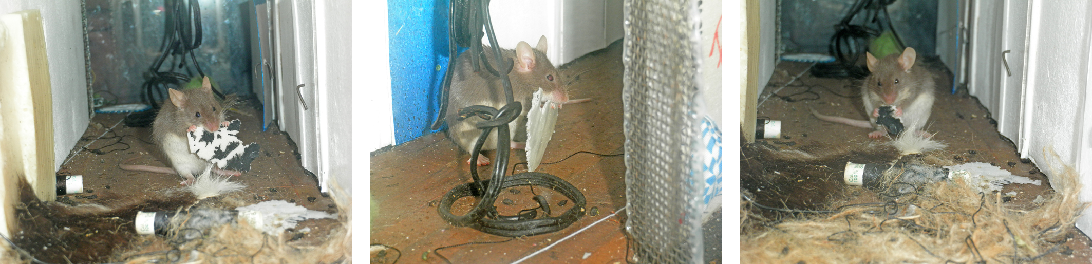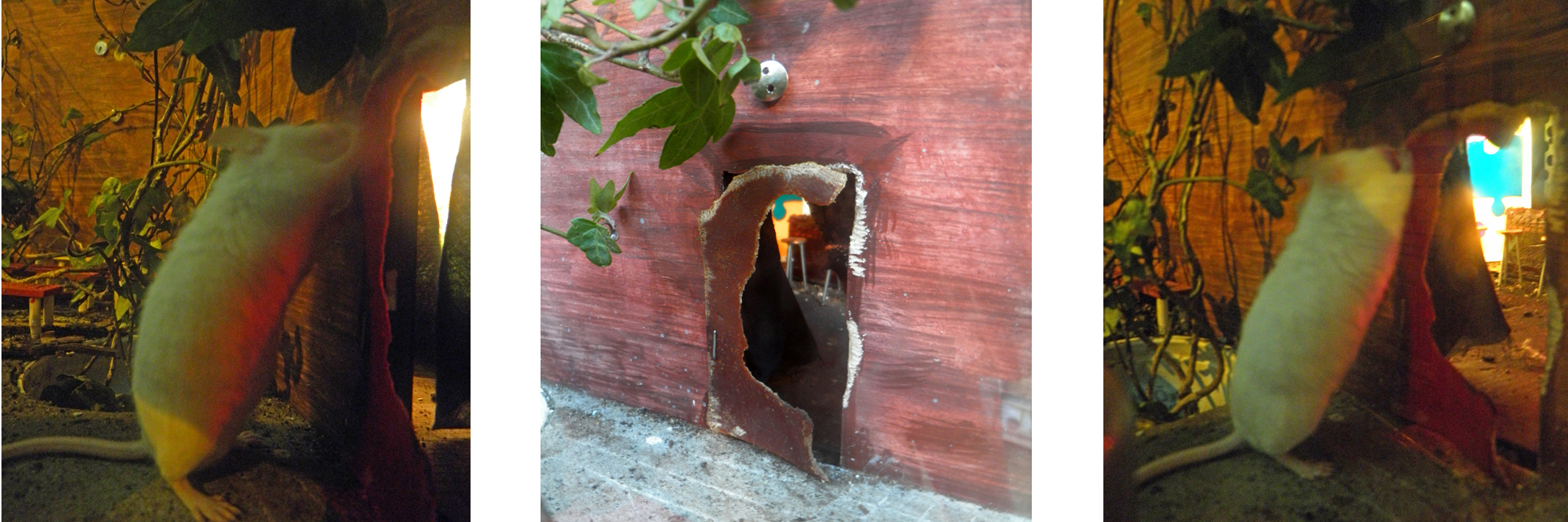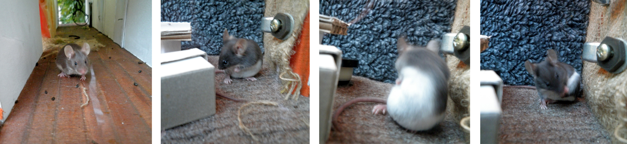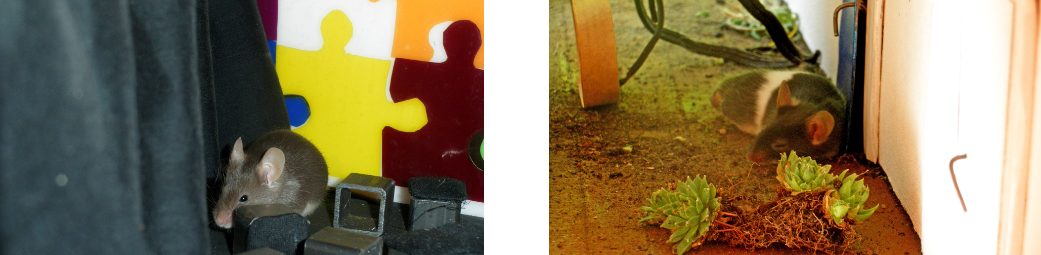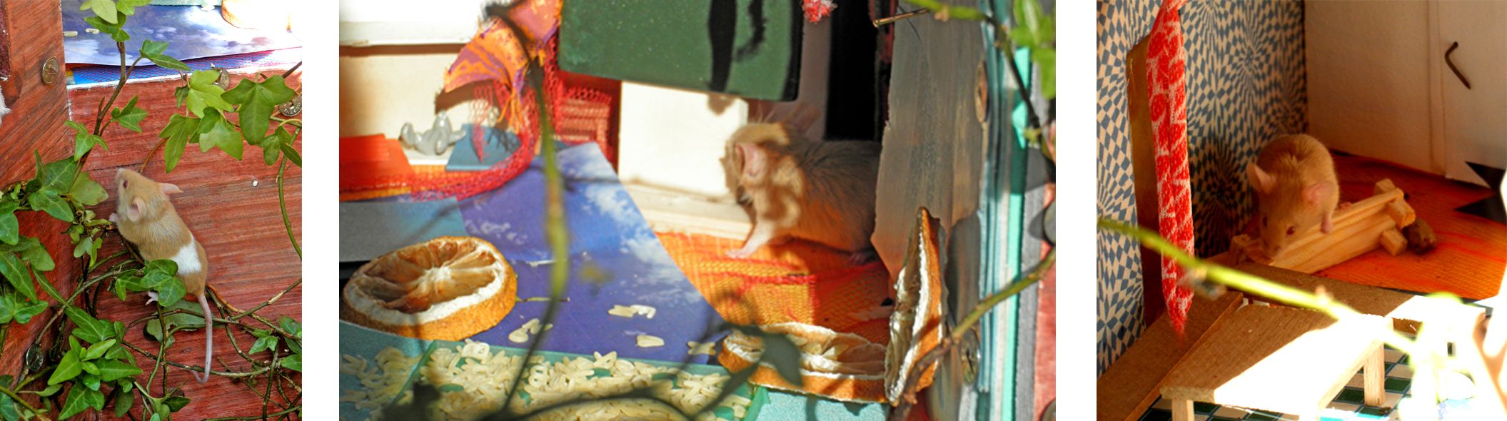 20.10.: die Mäuse leben verschiedene Schlaf- und Wachrythmen in zumeist gleichen Konstellationen die drei Weibchen Rudolfine, Rapunzel und Rabiata sind fast immer gemeinsam unterwegs, Fräulein Semmel, die etwas zurückgeblieben und viel kleiner ist immer allein. Herr Helge stellt einer der Fräuleins nach oder zieht allein ums Haus