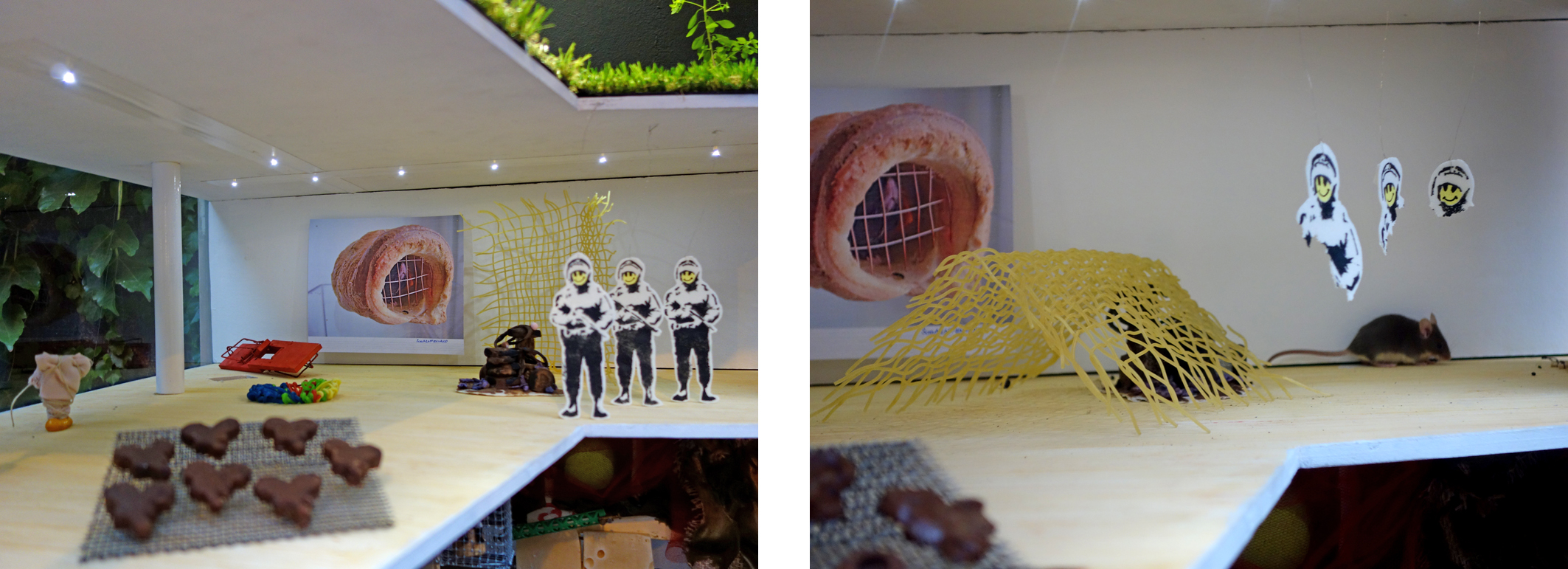 die Mäuse haben sich über ein Modell eines Kunstwerks von Karl-Heinz Ströhle hergemacht - verfressen sich an der Lakritze und liegen im Zuckerschock unbeteiligt herum.